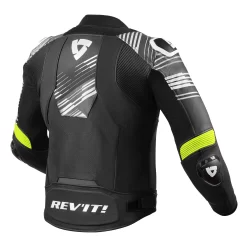 Giacca Moto Pelle Racing Macna Tracktix Nero Bianco Giallo Fluo