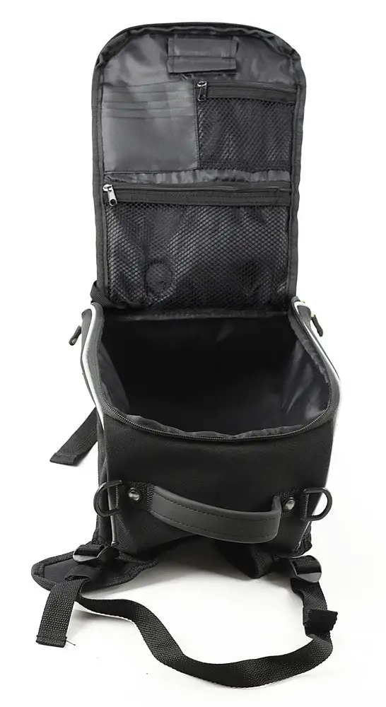 – Borsa universale in poliestere per serbatoio con sistema di fissaggio a cinghie regolabili e con tasche per calamite con magneti per il fissaggio inclusi