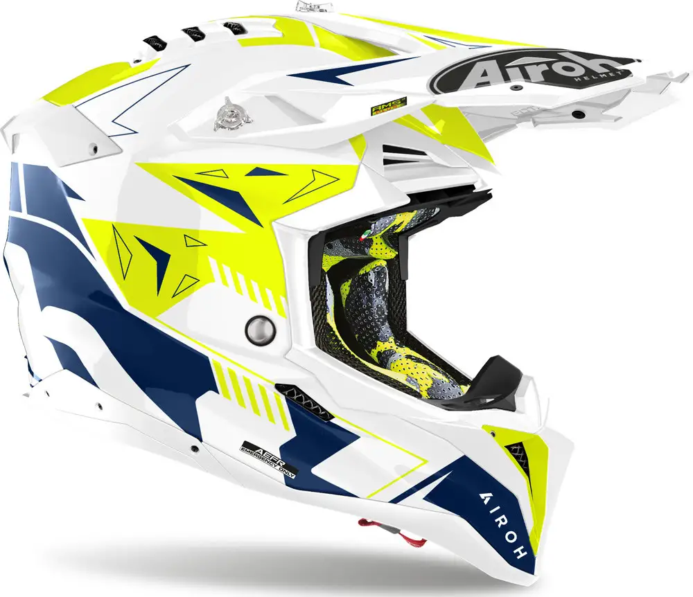 Descrizione prodotto Casco Cross Airoh Aviator 3 Spin Giallo Blu lucido