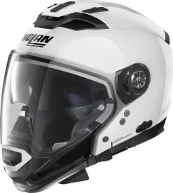 È il crossover da strada e fuori strada top di gamma di Nolan, il primo casco on-off dotato di mentoniera protettiva amovibile sul mercato. Si caratterizza per il design d’ispirazione off-road, le ricche dotazioni tecniche e la buona disponibilità di colori e grafiche. Volume contenuto (grazie alla disponibilità di due misure di calotta esterna), doppia omologazione P/J, visiera ultrawide, oblò particolarmente ampio compatibile con l’uso della maschera (anche a visiera montata e aperta), schermo parasole VPS (regolabile in svariate posizioni e dotato di sistema di richiamo automatico), sistema di ventilazione superiore AirBooster Technology, sistema di ritenzione con regolazione micrometrica a doppia leva Microlock2, innovativa imbottitura interna di conforto Clima Comfort (con tessuti micro-forati e paranuca regolabile) e predisposizione per il sistema di comunicazione N-Com vogliono fare di N70-2 il crossover da strada e fuori strada di riferimento per il moto-turista più esigente