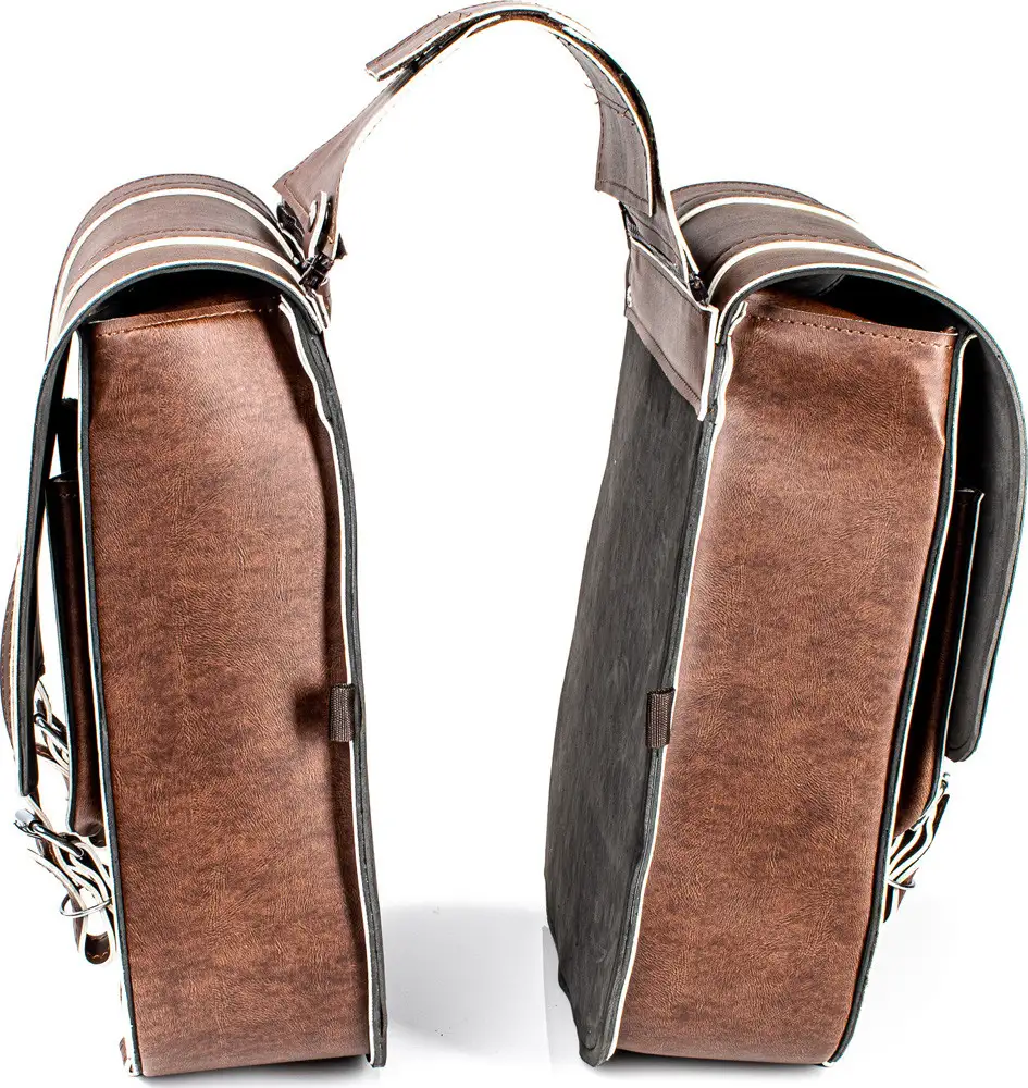 Coppia borse laterali in pelle sintetica effetto invecchiato, dallo stile Custom e/o Cafe Racer. Le Mustang di Carburo dispongono di fibbie cromate molto resistenti con clip per sgancio rapido.