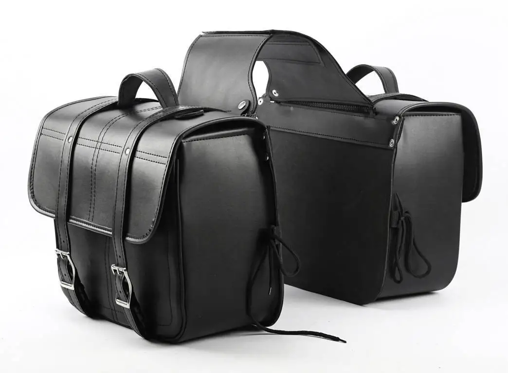 – Borse laterali moto custom con fibbie cromate.