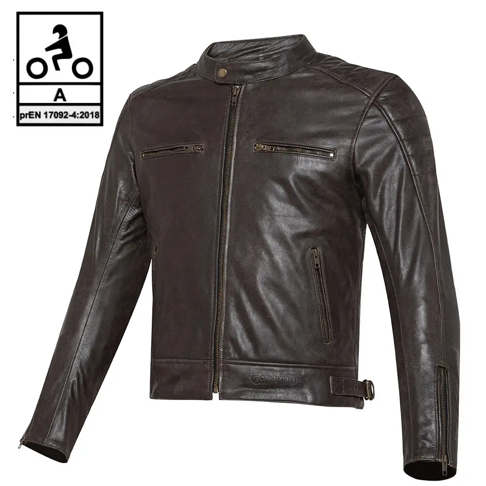 Descrizione prodotto Giacca moto pelle Carburo TWISTER certificata CE Marrone