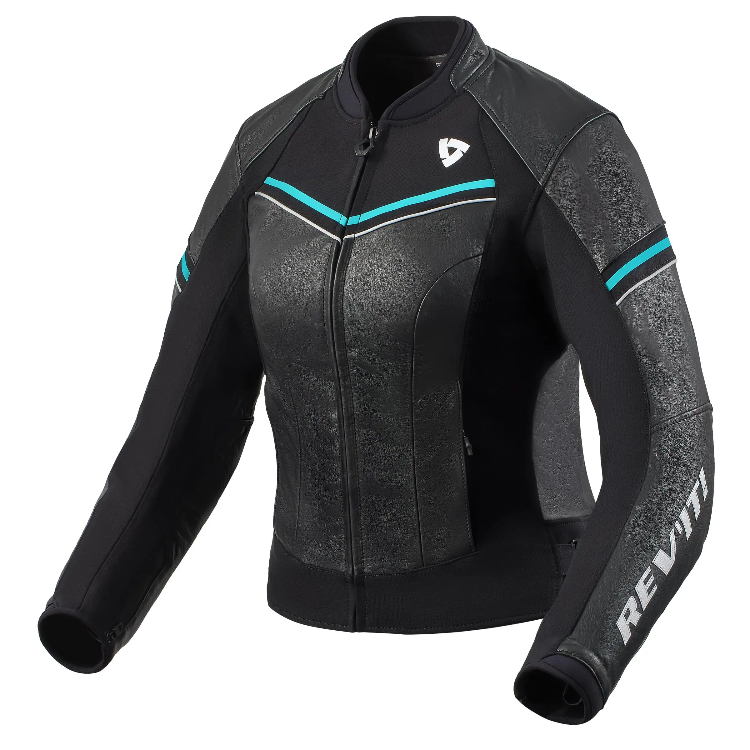 Descrizione prodotto Giacca moto pelle donna Rev’it Median Nero Turchese
