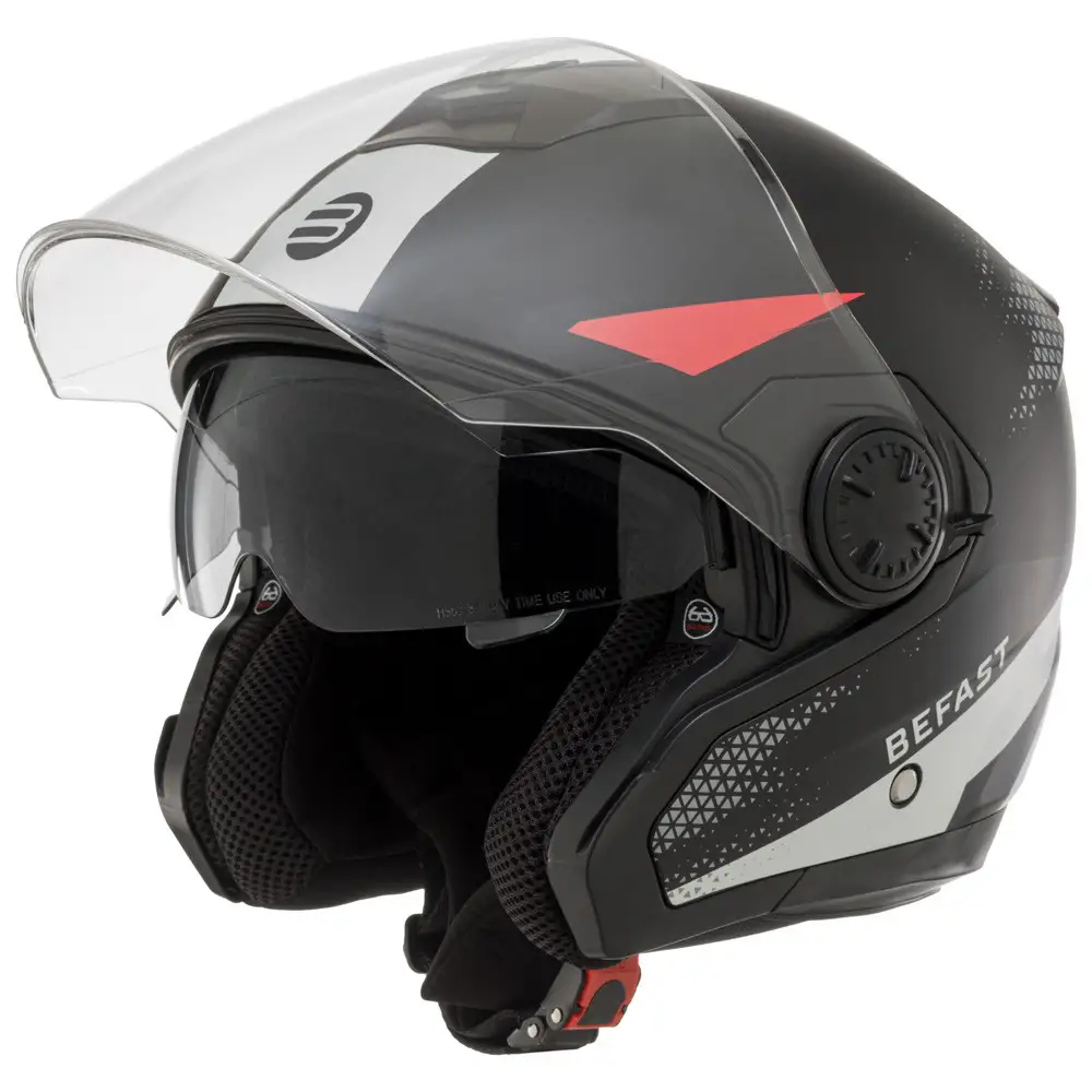Il Casco jet con omologazione ECE 06 che ti accompagnerà in ogni tua uscita in moto o scooter in città, o nelle tue uscite fuori porta: Befast VOLT è un casco leggero e dotato di tutte quelle disposizioni tecniche che lo rendono pratico e funzionale.