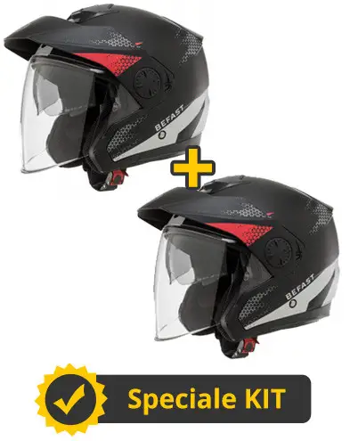 Descrizione prodotto Kit Coppia Volt Bianco Rosso Nero – 2 Caschi jet Befast con omologazione ECE 06
