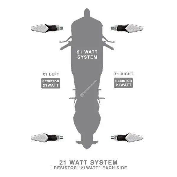 N.B.: La coppia di indicatori a led (lato destro o lato sinistro) necessita di una sola resistenza per il corretto lampeggio.